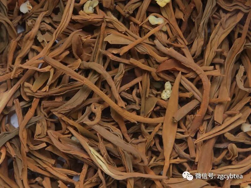 葉底細(xì)嫩,色澤紅勻,葉質(zhì)柔軟有光澤,桂花金黃色,花色明亮。