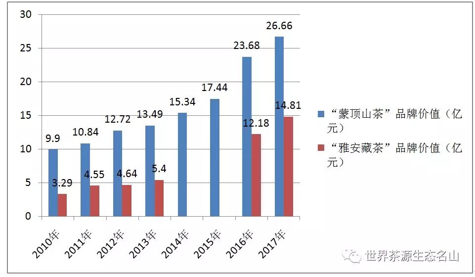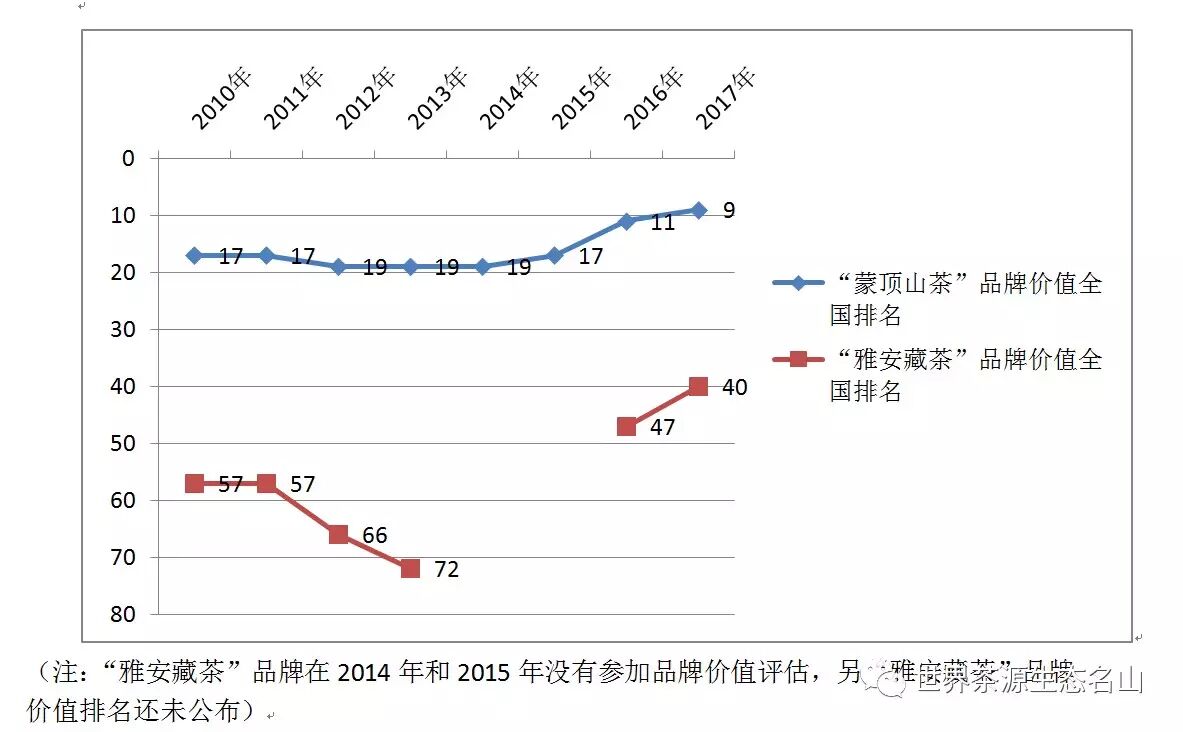 “蒙頂山茶”和“雅安藏茶”品牌價(jià)值排名情況圖示: