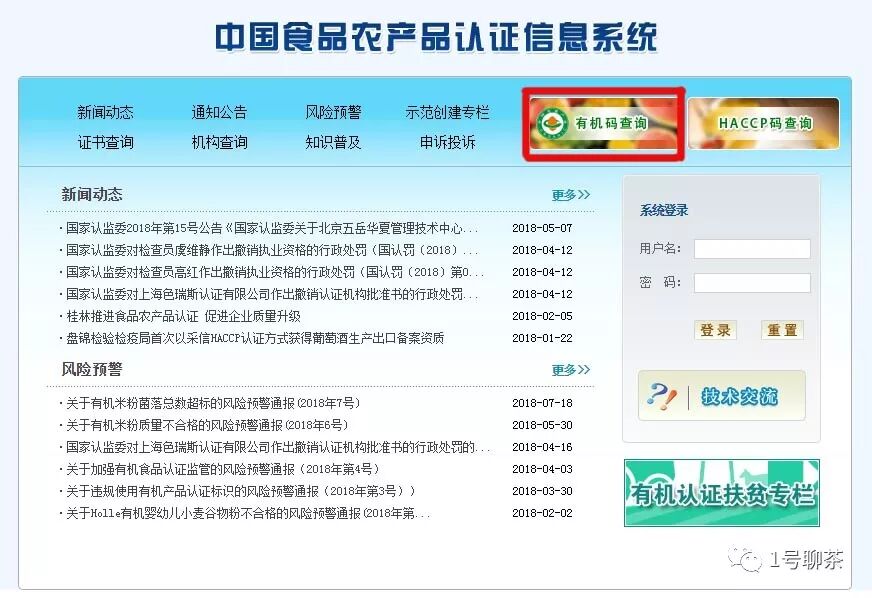 每件有機食品都有單獨的防偽身份證,可以刮去隨商品必須標貼的防偽涂層獲得有機碼,然后在http://food.cnca.cn/中國食品農(nóng)業(yè)產(chǎn)品認證信息系統(tǒng)里,1號聊茶畫出的紅框處查詢時效和真?zhèn)巍?/p>